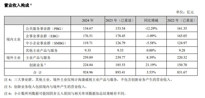 2024 年,海康威视总营收达到 924.96 亿元,同比增长 3.53%。