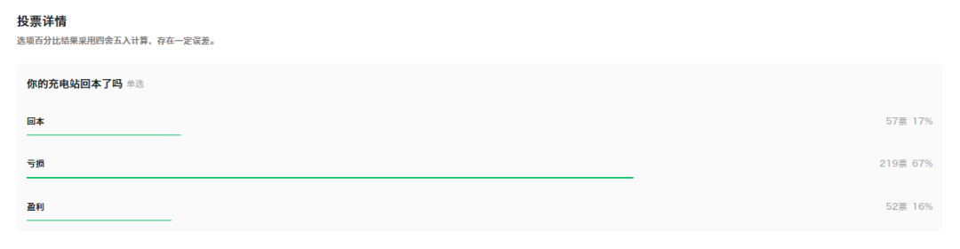 充电桩利用率,是充电场站盈利的关键因素,也是场站运营的痛点所在。在停充圈发起的【你的充电场回本了吗】的调查中,有328位读者投票。数据显示:67%场站亏损,17%场站回本,16%的场站盈利。当然,这是粗略的统计,没有统计投建时间。不过也侧面反映出了目前投资充电场在盈利方面的挑战。