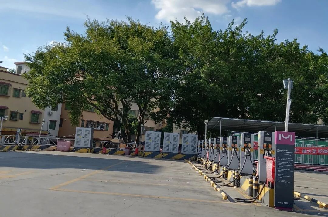 位于广州鹤洞的中石化充电站内,司机告诉停充圈,会空转四五公里特意来这个场站充电,除了环境和价格,吸引点是这里有免费自动洗车。