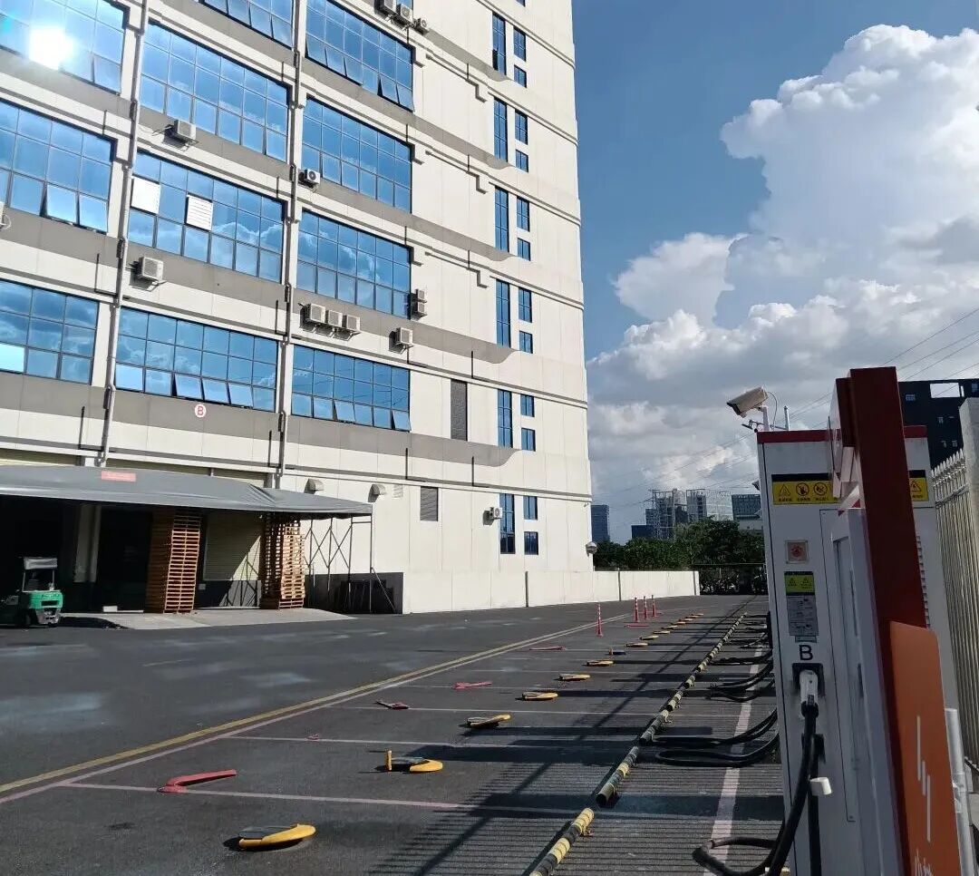 该场站配备8台120千瓦双枪一体机,2024年投建。一楼有装卸区,建站之初应该是看中来往装卸的货车。对外运营,其他车辆可以进去充电。但经过观察,由于园区门口有保安和道闸,会让很多司机误认为这是专为该园区服务的充电场站。同时,该充电场全天价格在1元/kWh-1.2元/kWh区间,没有优势,司机反映充电价格太贵,加之没有其他配套,现场调研半个小时期间,没有车辆充电。