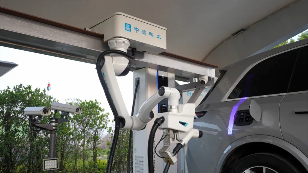 中建科工生产的充美移动充电机器人,配备柔性机械臂,插枪精度高;支持 V2X 车网互动技术;单台机器人可同步管理多台车辆。解决充电枪太重问题,对女性车主更加友好。