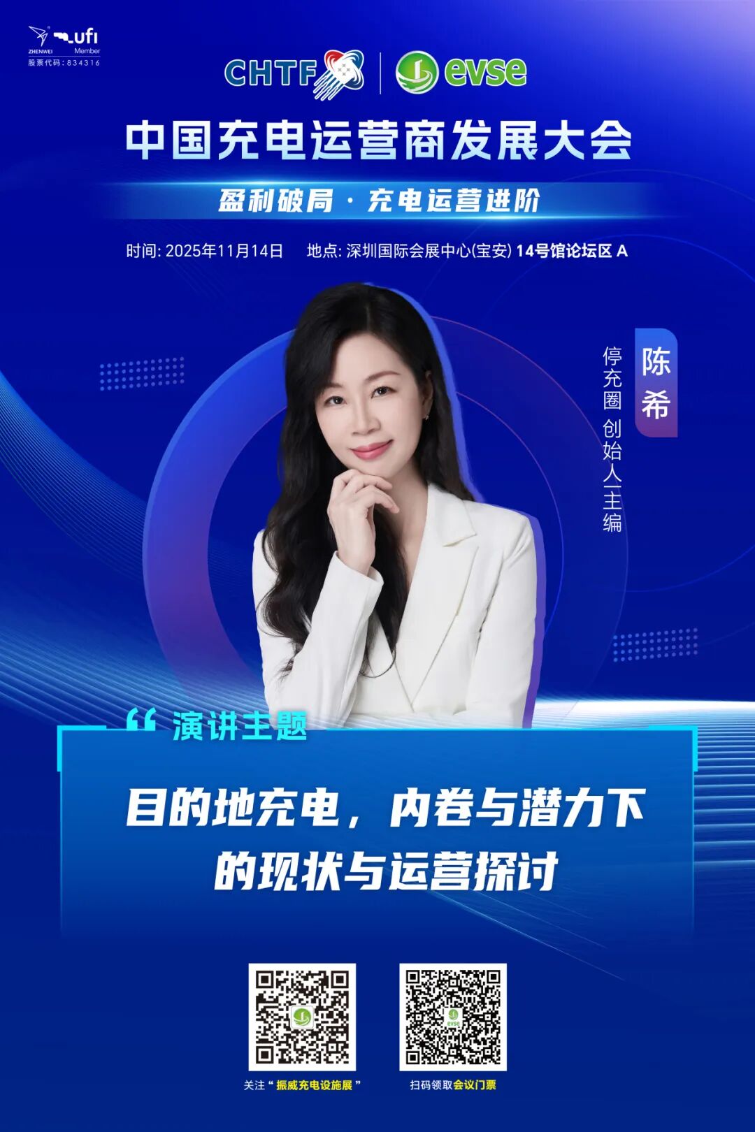 中国充电运营商大会将于11月14日在深圳国际会展中心(宝安)14号馆馆内论坛区A召开。本次大会以“盈利破局·充电运营进阶”为主题,得到了充电运营领域相关代表的大力支持,停充圈创始人/主编陈希、四川充景里科技有限公司创始人岳 涛、车电(广东)新能源有限公司创始人/执行董事、广东车电新动能科技有限公司董事/总经理李富成、丹磁新能源总经理林重点、深圳点点电工网络科技有限公司董事长徐超银将出席本次论坛活动。