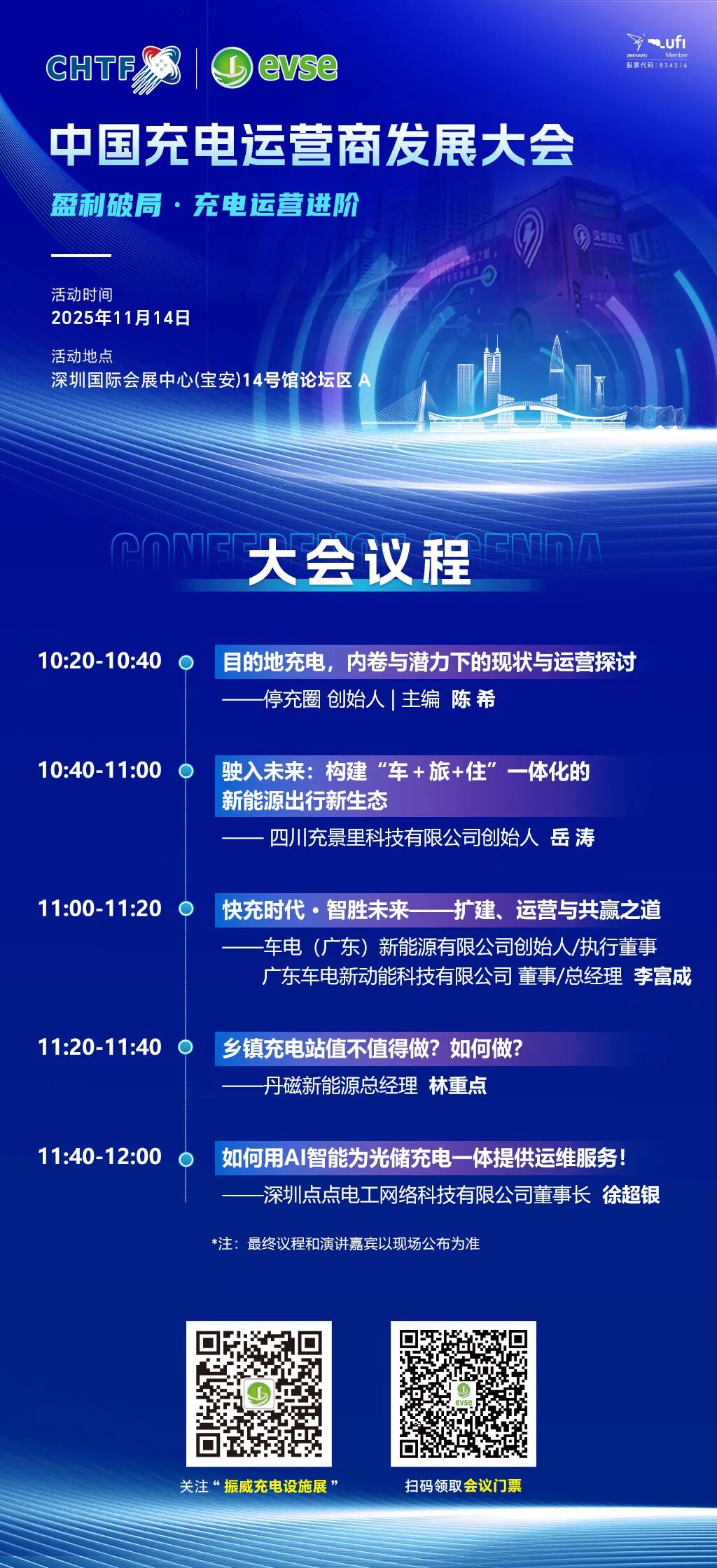 本次大会的演讲嘉宾将为大家带来聚焦目的地充电、出行新生态、充电桩下乡、AI赋能光储充运维、降本增效等充电运营商建站经验分享,推动高质量充电网络建设,助力产业可持续发展,欢迎大家前来听会交流。
