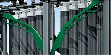 灵感来源于中华文化中的雄师。狮子是吉祥的灵兽,被赋予了文化意义,采用现代艺术表现手法,赋予新的内含。