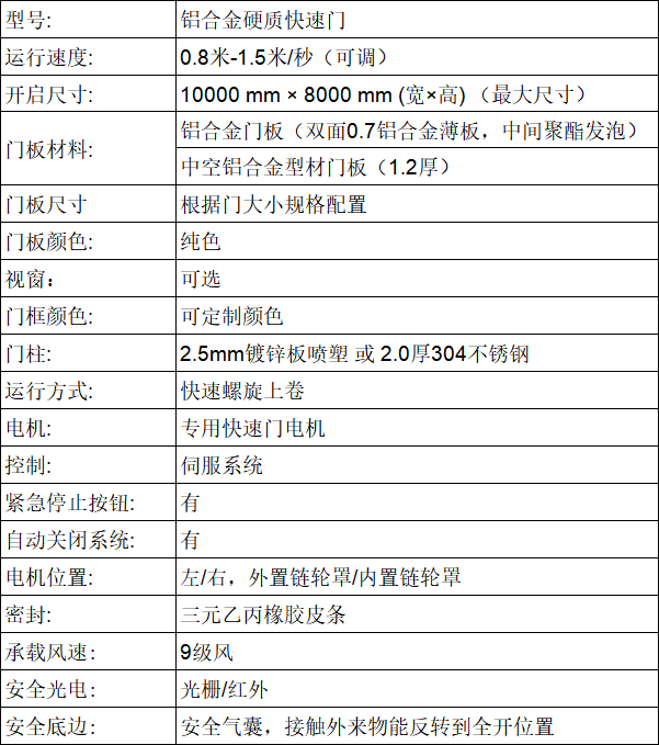 硬质快速门--集保温、节能、密封、高效、抗风、环保于一身的新型金属工业门,开启速度快速安全,具有很高的可靠性、实用性、易操作及快速修复等特性。