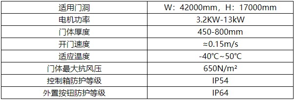 (5)柔性升降大门的抗风力为650kg/m2。