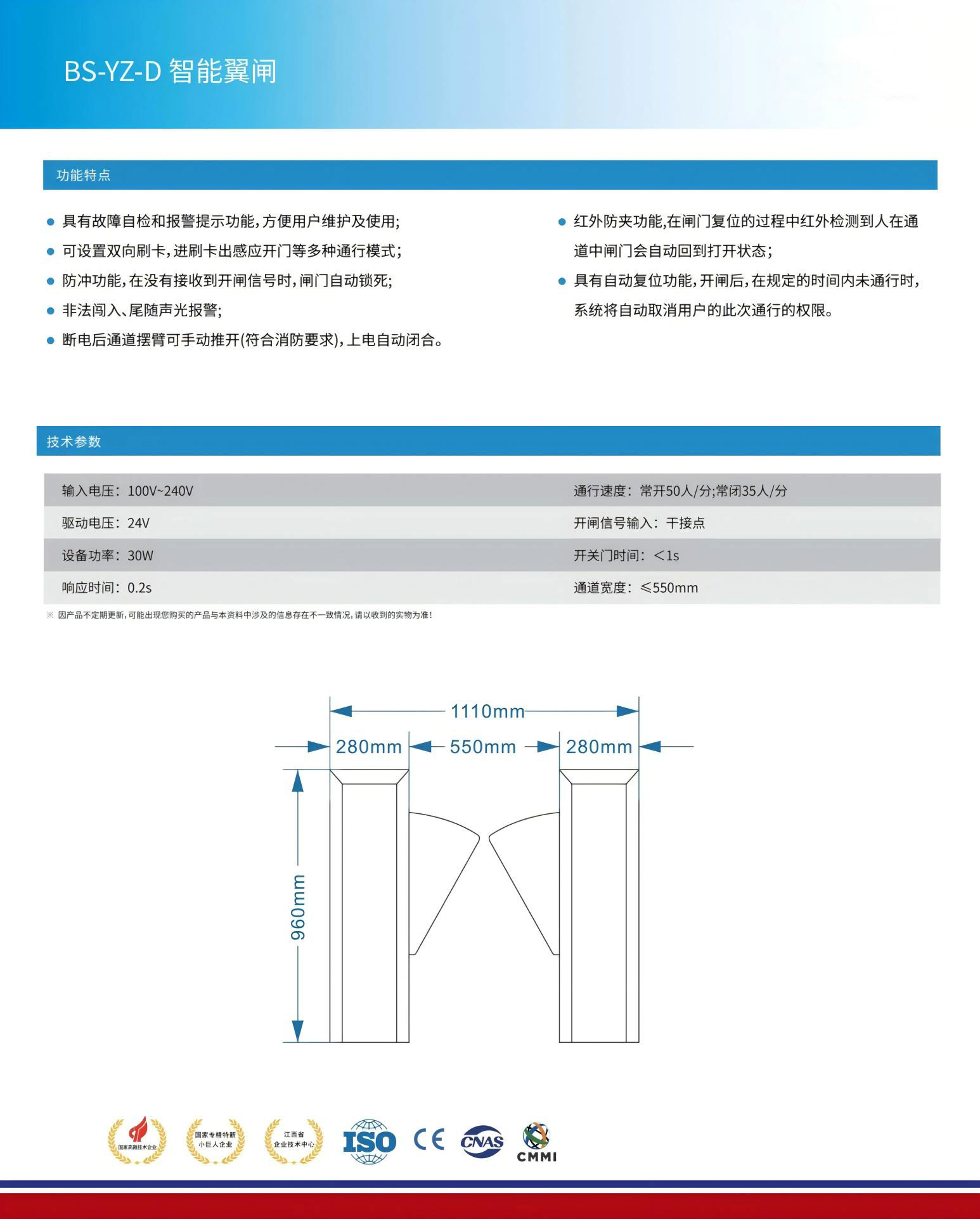 ● 断电后通道摆臂可手动推开(符合消防要求),上电自动闭合;