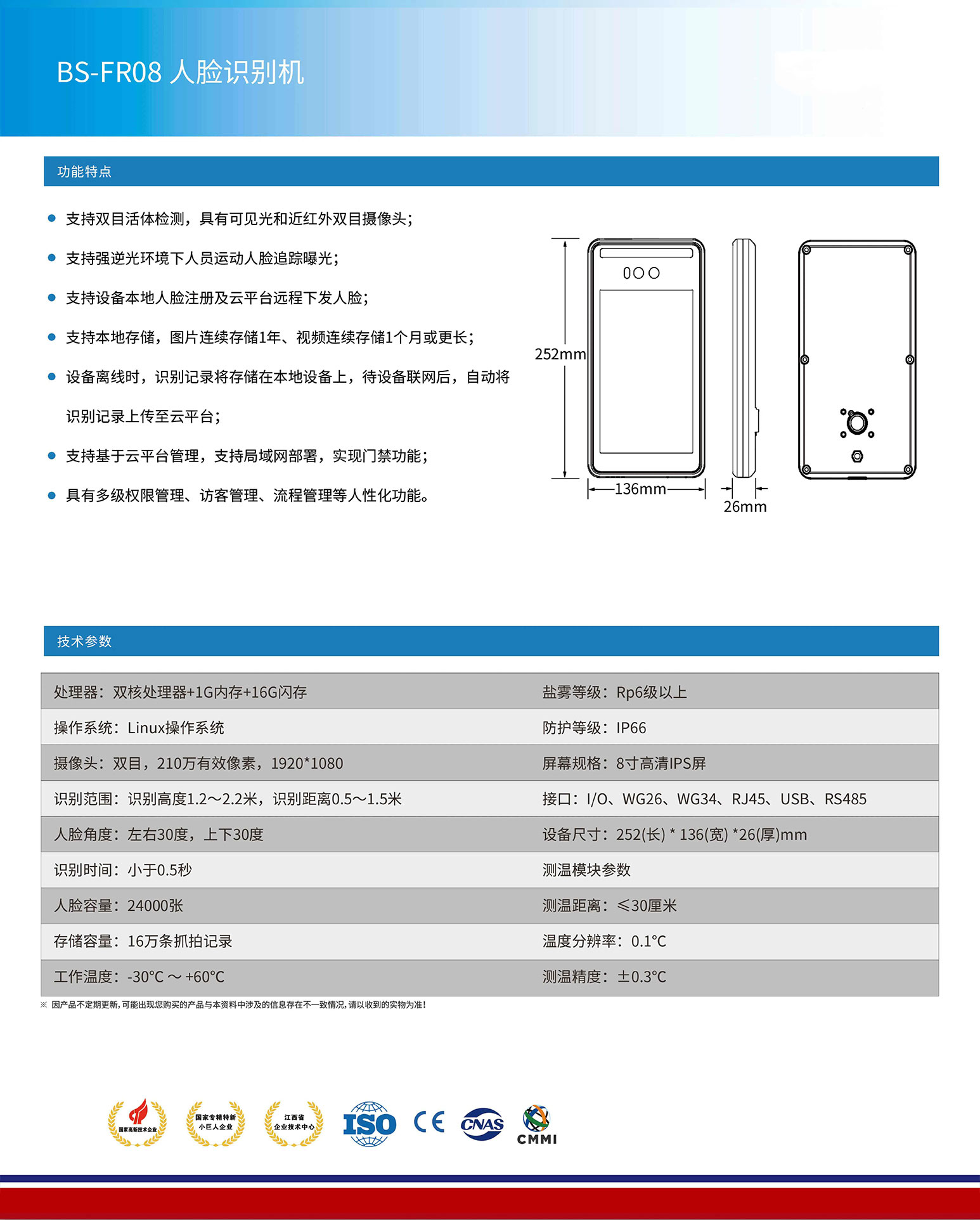 ● 支持双目活体检测,具有可见光和近红外双目摄像头;