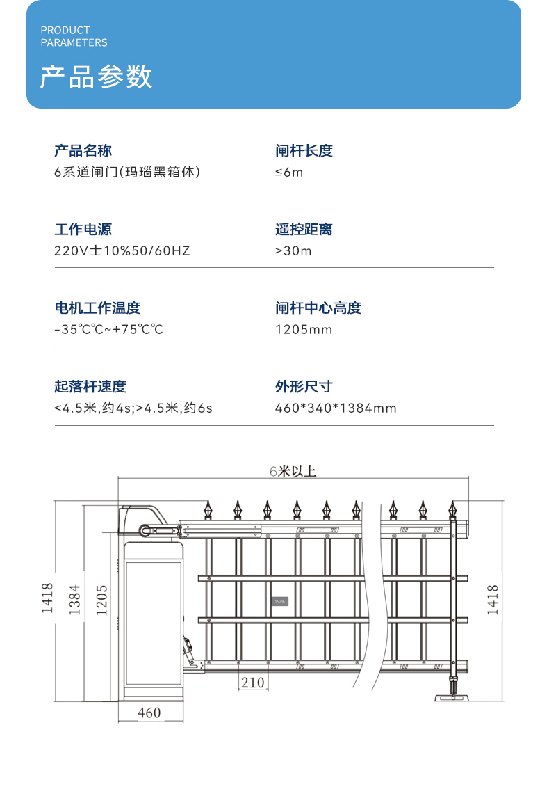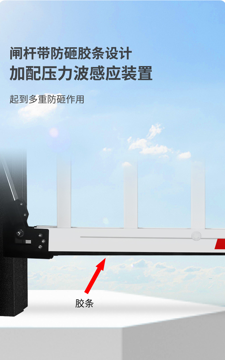 标配高灵敏度压力波感应器,完善的防砸人、车保护措施