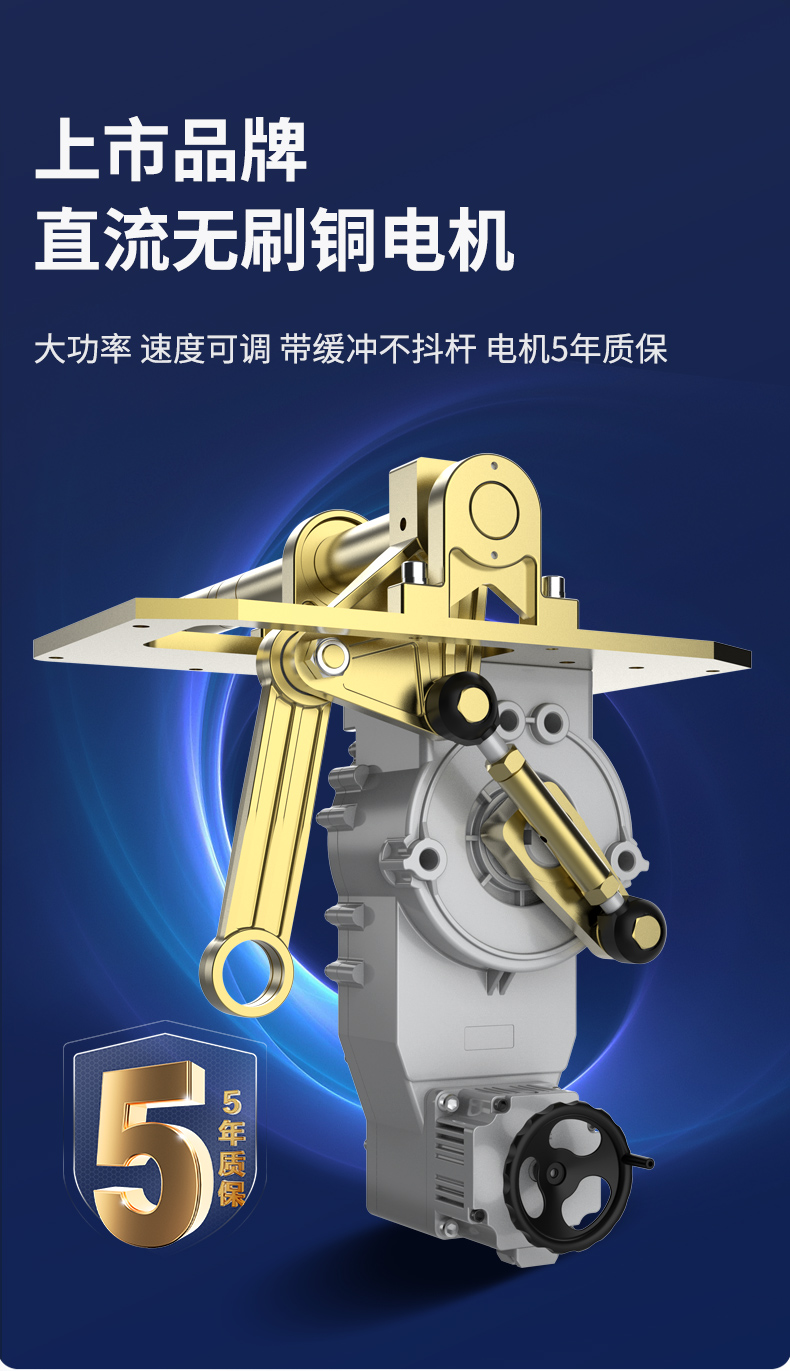 采用直流变频机芯,一体化设计、霍尔数字限位、二级减速装置